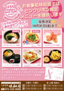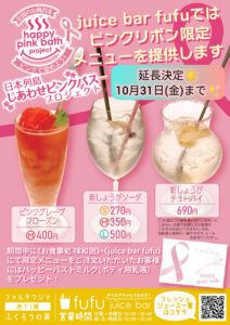 開催期間: 10月1日(水)~10月31日(金) | 内容:🍹ピンクリボン プロジェクト延長決定🍴 |