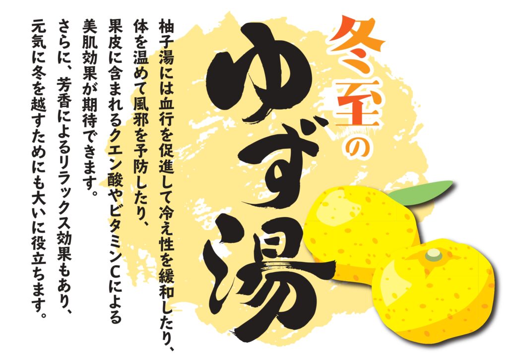 冬至の日は是非ふくろうの湯に来ていただきゆず湯をご堪能下さい♪