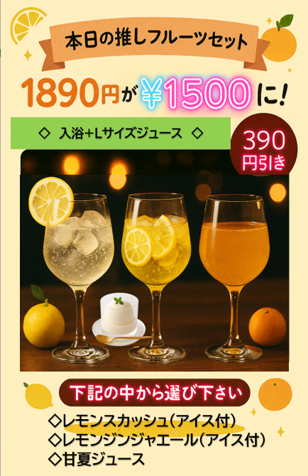 ※あかすり・オイルエステは浴場内ご利用の為、別途入浴料が必要です。