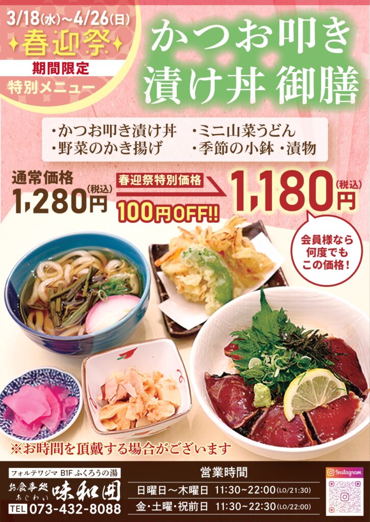 | 開催期間: 3月18日(水)~4月26日(日) | 内容:◆ふくろうの湯 会員様ご本人限定企画◆ 春迎祭 |