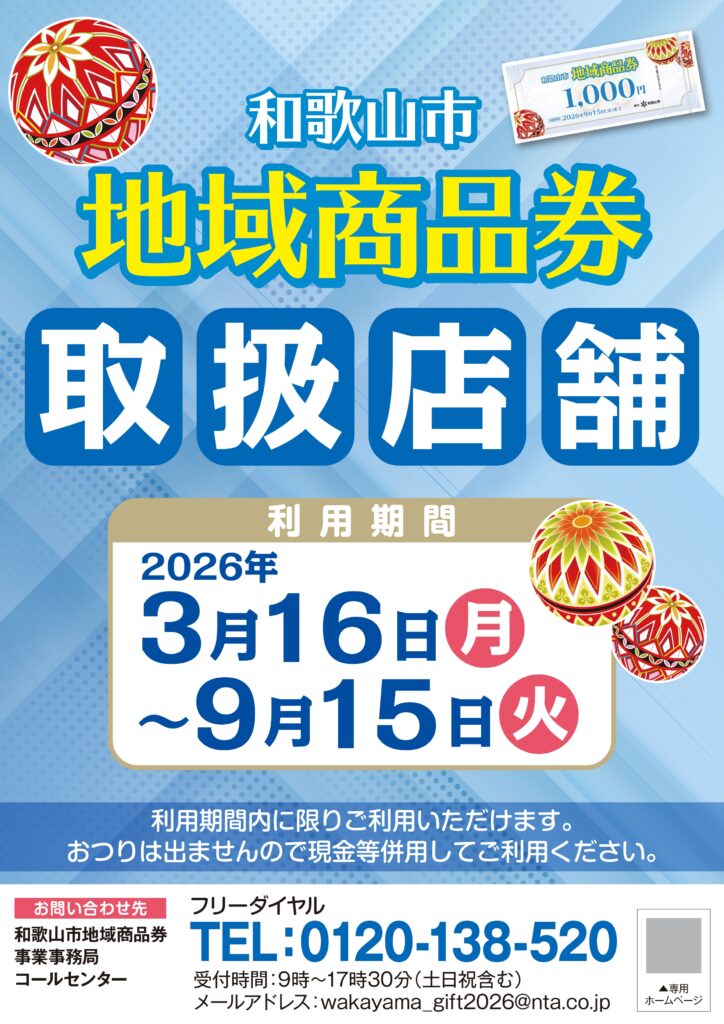 | 開催期間: 3月16日(月)~9月15日(火) | 内容:◇和歌山市地域商品券◇ |