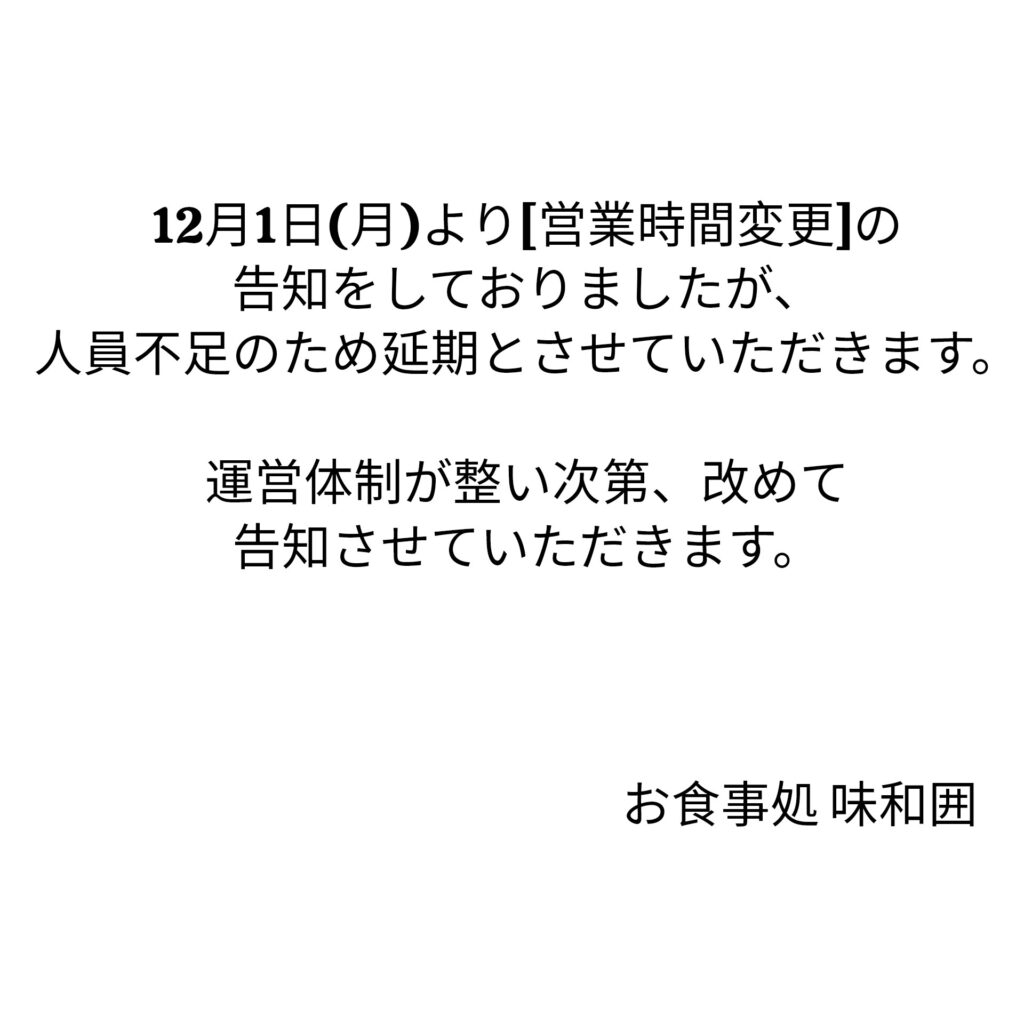 12月1日(月)より【営業時間変更】の告知をしておりましたが、