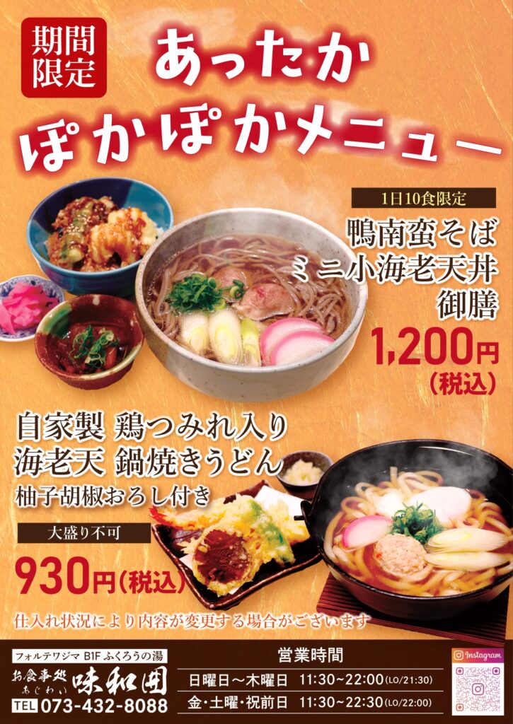 本日2月5日(木)~期間限定で 「あったかぽかぽかメニュー」はじまりました☆