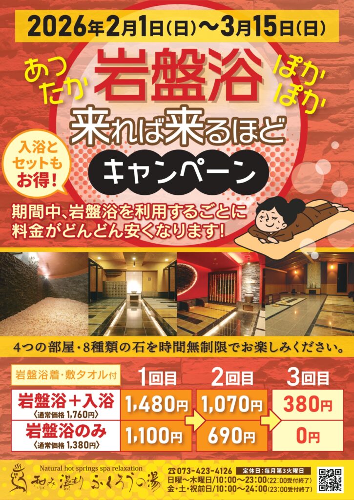 期間中岩盤浴をご利用していただくごとにお得になります♪